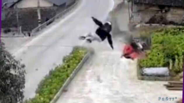 Драматичный полёт мотоциклиста попал на видео в КНР