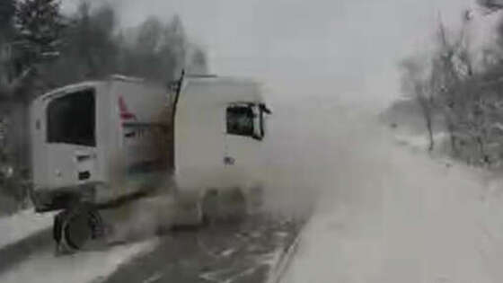 На трассе М-7 "Волга" водитель большегрузного автомобиля смог увернуться от едущей навстречу неуправляемой фуры. Видеозапись инцидента опубликовал Telegram-канал "Дальнобойщики". "И снова рубрика с трассы М-7, прошел более 150 км, не увидел ни одного дорожника", - отмечается в публикации. На кадрах с видеорегистратора, установленного в кабине, видно, что середина дорожного полотна и обочины покрыты толстым слоем снега. Навстречу автомобилю с камерой по центру проезжей части на высокой скорости движется неуправляемый грузовик, тягач которого развернуло и прижало к полуприцепу. Водитель грузовика с регистратором смог плавно сместиться к обочине и избежать столкновения, как и возможного падения в кювет. Водитель продолжил путь.