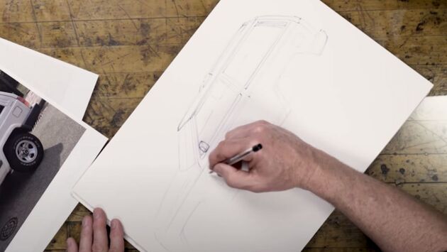 Американский художник Чип Фуз является признанным авторитетом в мире автомобильного дизайна. Один из YouTube-каналов разместил видеоролик, где перед ним поставили задачу доработать внешний вид Jeep Cherokee XJ. Как рассказал мужчина, ему нравится оригинальный дизайн XJ, который не стоит в корне изменять, а можно внести только небольшие изменения. Он поднимает подвеску, добавляя большой комплект колес и шин, которые находятся под увеличенными мощными арками крыльев. Также внедорожник получил новую подножку, чтобы компенсировать дополнительную высоту. Передний и задний бамперы дизайнер оснастил усилениями, а саму лицевую панель оставил неизменной. Чип Фуз решил не добавлять внедорожную «люстру» над лобовым стеклом, чтобы сохранить оригинальную элегантность XJ, который несколько раз восхищается в видео. Гипнотично наблюдать, как Фуз творит свое волшебство, набрасывая основные формы XJ. Он сохраняет классические линии, а попозже добавляет свои изменения поверх контура жирными маркерами. То, что начинается в виде наброска на пустой странице, приобретает вид настоящего настенного постера.