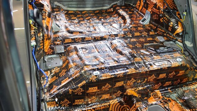Перед тем, как приступать к проведению шумоизоляции, стоит понимать, что некоторые автомобили изначально не могут быть тихими. Материалы для проведения работ, представленные на рынке, можно поделить на 2 группы — шумопоглощающие и вибродемпферы. Первые содержат внутри пузыри воздуха, при помощи чего и создается звукоизоляция. Кроме того, с таким материалом тепло в салоне удерживается намного дольше. Шумопоглощающие средства хорошо помогают в борьбе со звуком мотора, а вибродемпферы справляются с вибрацией кузова. Процедура проводится в несколько этапов. Первым делом снимается и разбирается салон, отсоединяется вся электроника, внутри всё полностью просушивается. Если на заводском материале появились вздутия, его лучше удалить и положить новый. После этого проводится обезжиривание поверхности. От этого этапа зависит качество выполняемой работы. Первым делом нужно установить вибродемпфер, а на него — шумопоглотитель. В качестве третьего слоя можно применить звукоизолятор. Подготовленный материал сначала нужно обрезать по шаблонам, а уже потом укладывать. Чтобы лишний раз не возиться с клеем, можно купить листы с клейкой стороной. Для разглаживания поверхности после укладки применяется строительный фен. Только после полного высыхания и соединения можно проводить сборку салона.