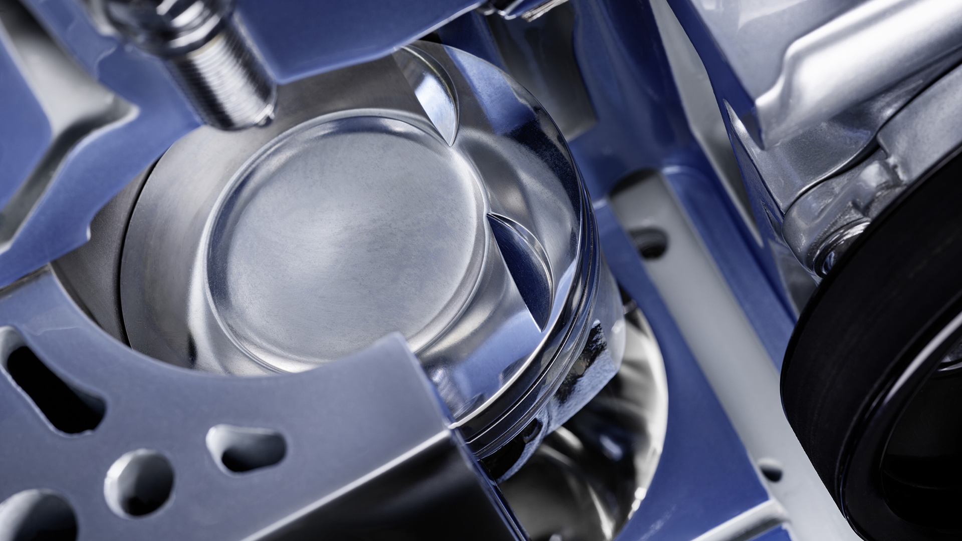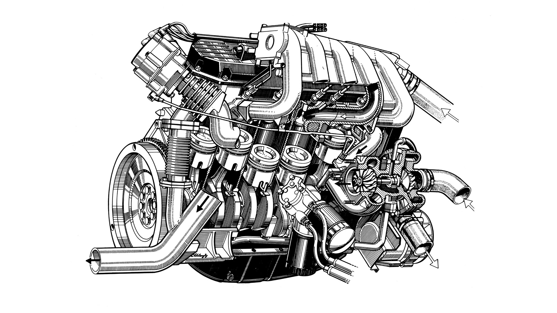 Затем следует один из самых важных этапов: прикручивание головки блока цилиндров и установка свечей зажигания. Искра воспламеняет топливовоздушную смесь, приводя поршни в движение и создавая характерный звук пятицилиндрового двигателя. Центральным элементом системы подачи воздуха является впускной коллектор, который затем крепится болтами вместе с большим турбокомпрессором, сжимающим поступающий воздух и подающим больше кислорода в камеру сгорания. Это обеспечивает лучшее сгорание и, следовательно, способствует оптимизации производительности и эффективности. Наконец, крепится электропроводка двигателя и устанавливается маховик.