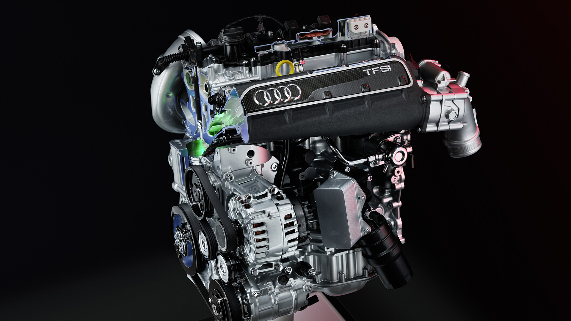 Двигатель 2.5 TFSI использует двойной впрыск топлива — во впускной коллектор и в камеры сгорания — а также систему Audi valvelift system для плавного управления выпускными клапанами. Это обеспечивает более точную регулировку топливовоздушной смеси, обеспечивая оптимальную мощность при сниженном расходе топлива. В пятицилиндровом двигателе топливо впрыскивается под давлением 250 бар; большой турбокомпрессор создаёт максимальное давление до 2,5 бар.