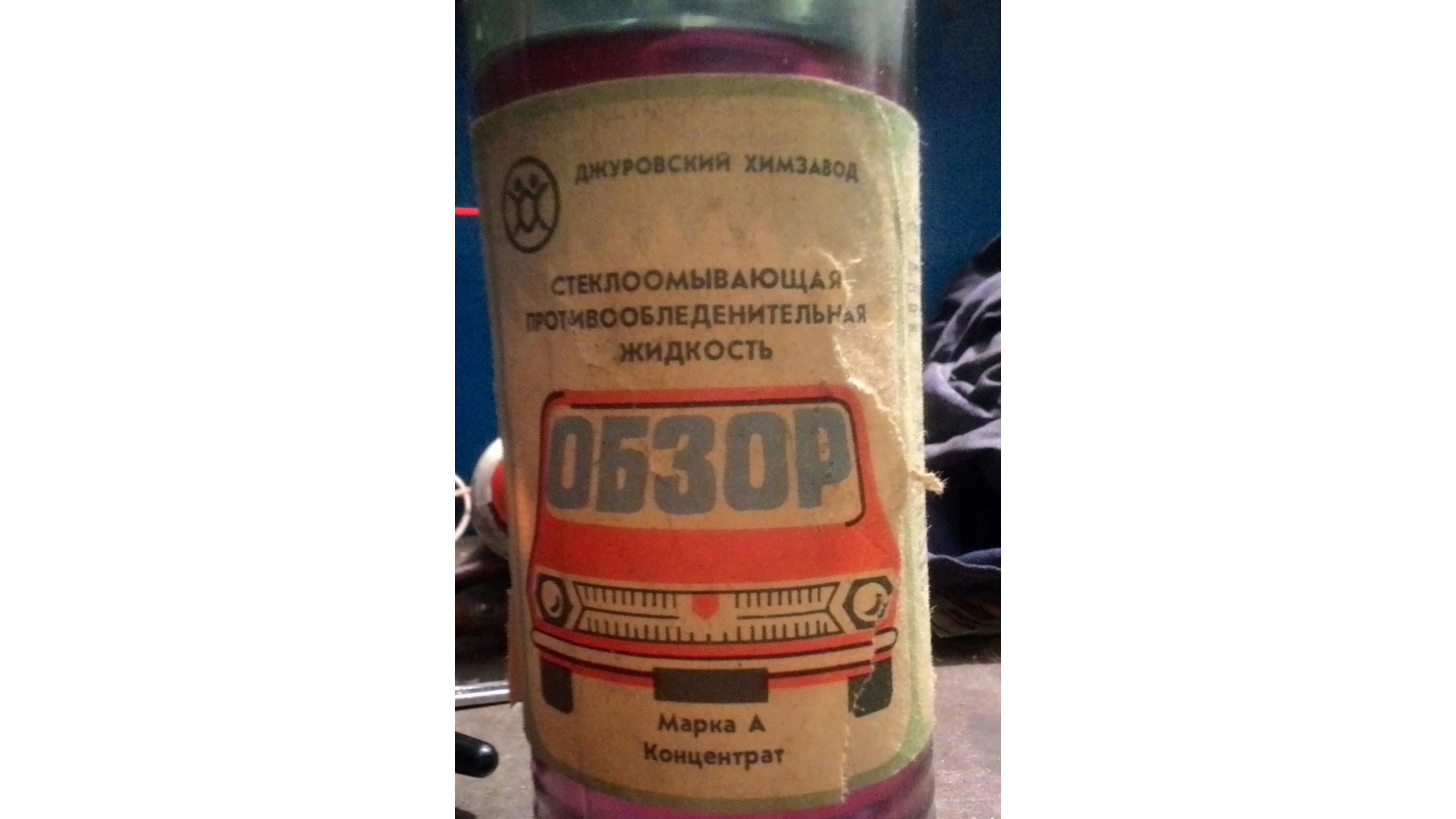 На самом деле, в СССР для счастливого обладателя личного авто такой субстанции как незамерзающая жидкость для омывателя лобового стекла официально не существовало. «Незамерзайка» поставлялась только в автопарки предприятий, ведомств, колхозы-совхозы и т. п. Назывался сей продукт «Обзор». Впервые он появился в 1987 году и представлял собой покрашенный в розовый цвет метиловый спирт. До того момента незамерзающая жидкость для омывателя лобового стекла промышленностью не выпускалась.